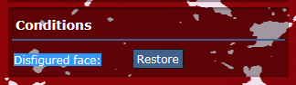 • In the Surgery UI window, on the right side below the head's integrity, the condition should show as "Disfigured face" or "Damaged vocal cords".